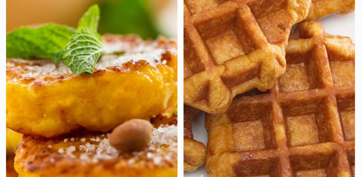 - Kepame įkaitintoje keptuvėje arba vaflinėje (kad nepriliptų įpilkit aliejaus arba įdėkit sviesto).